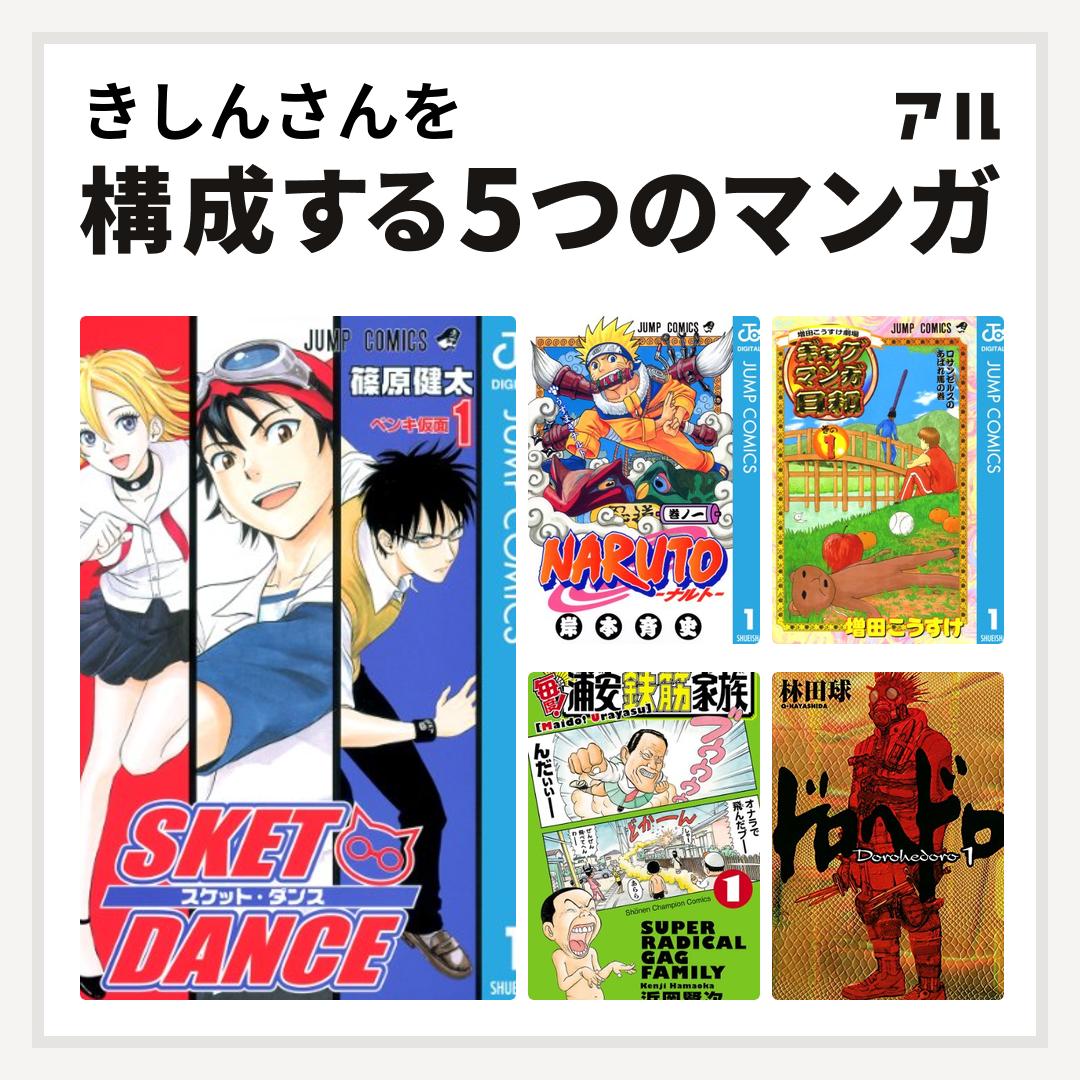 きしんさんを構成するマンガはsket Dance Naruto ナルト 増田こうすけ劇場 ギャグマンガ日和 毎度 浦安鉄筋家族 ドロヘドロ 私を構成する5つのマンガ アル